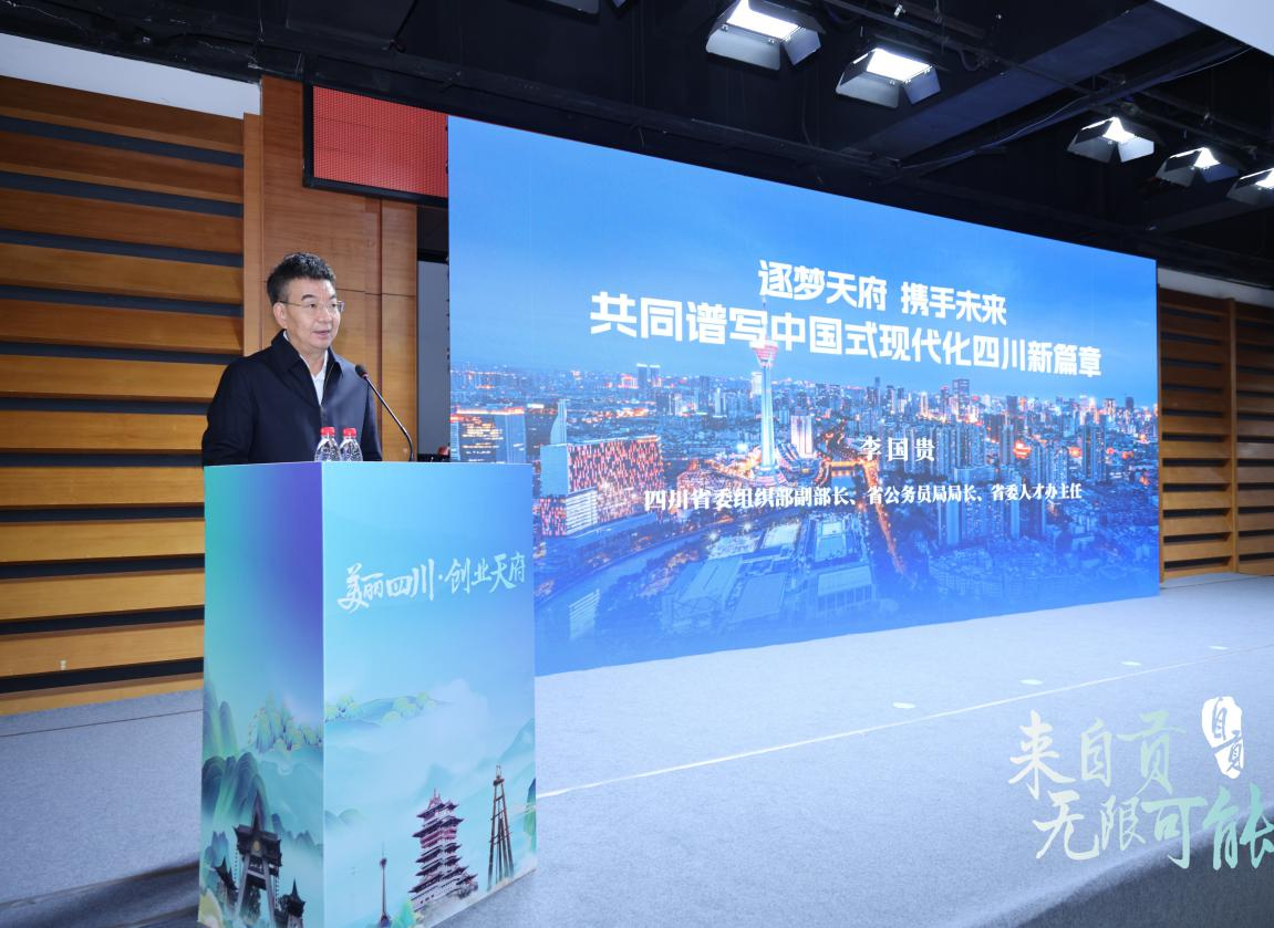四川省委组织部副部长、省公务员局局长、省委人才办主任李国贵作四川省主题推介,他指出四川是西部地区经济最发达、创新最活跃、生活最安逸的机遇之地,并以“锦绣天府”“开放天府”“创业天府”“安逸天府”四张名片推介美丽四川,重点介绍了人才支持政策、人才服务环境和人才创业舞台,诚邀广大学子走进四川、兴业四川、安居四川。